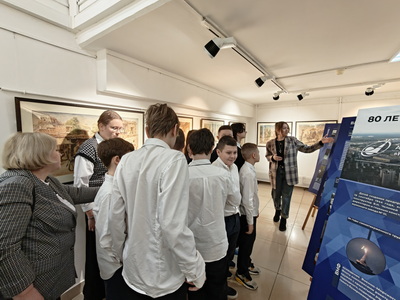 Чтобы более подробно познакомить ребят с разработками АО «ВПК «НПО машиностроения», им также был продемонстрирован фильм, подготовленный к 80-летию фирмы, которое отмечалось в 2024 году. Затем Алена Кочепасова пригласила участников урока осмотреть выставку «80 лет самоотверженного труда» – благодаря экспозиции дети проследили путь предприятия от небольшого конструкторского бюро до Военно-промышленной корпорации, объединяющей компании по всей России.