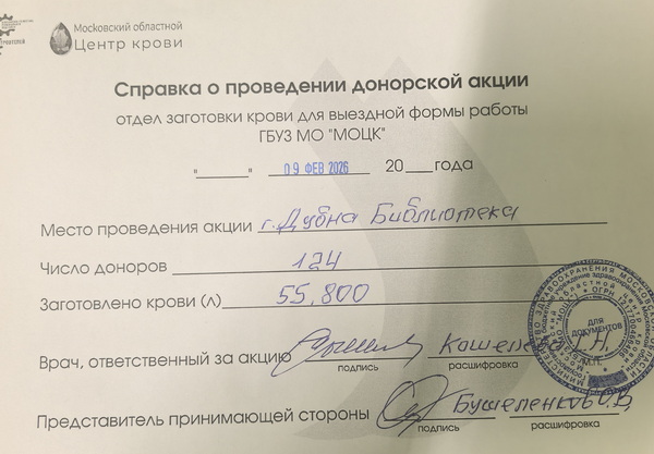 Жители Дубны и сотрудники «Радуги» регулярно участвуют в Днях донора, проводимых МОЦК и реготделением: все понимают, что их кровь может спасти многие жизни.