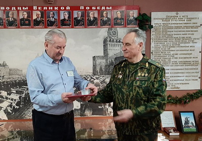Возглавлявший делегацию КТРВ советник генерального директора, председатель корпоративного отделения СоюзМаш генерал-лейтенант Владимир Бугреев вручил руководству музея приветственный адрес и памятный сувенир.