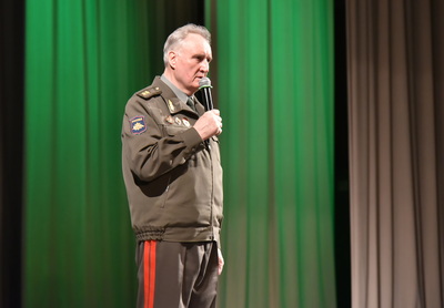 С приветственным словом и поздравлениями с наступающим праздником к присутствовавшим обратился возглавлявший делегацию КТРВ советник генерального директора, председатель корпоративного отделения СоюзМаш России генерал-лейтенант Владимир Бугреев.